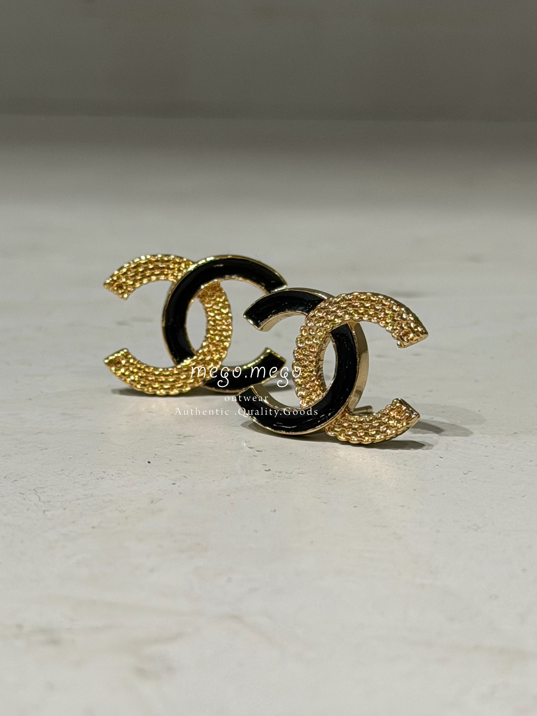 Chanel 黑金珐瑯撞色雙C耳環