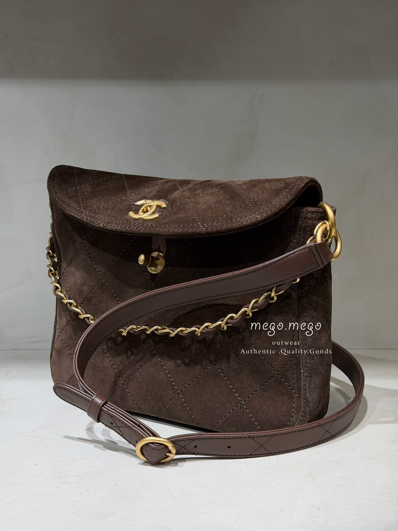 CHANEL 26C 麂皮Hobo流浪包 小號 深棕
