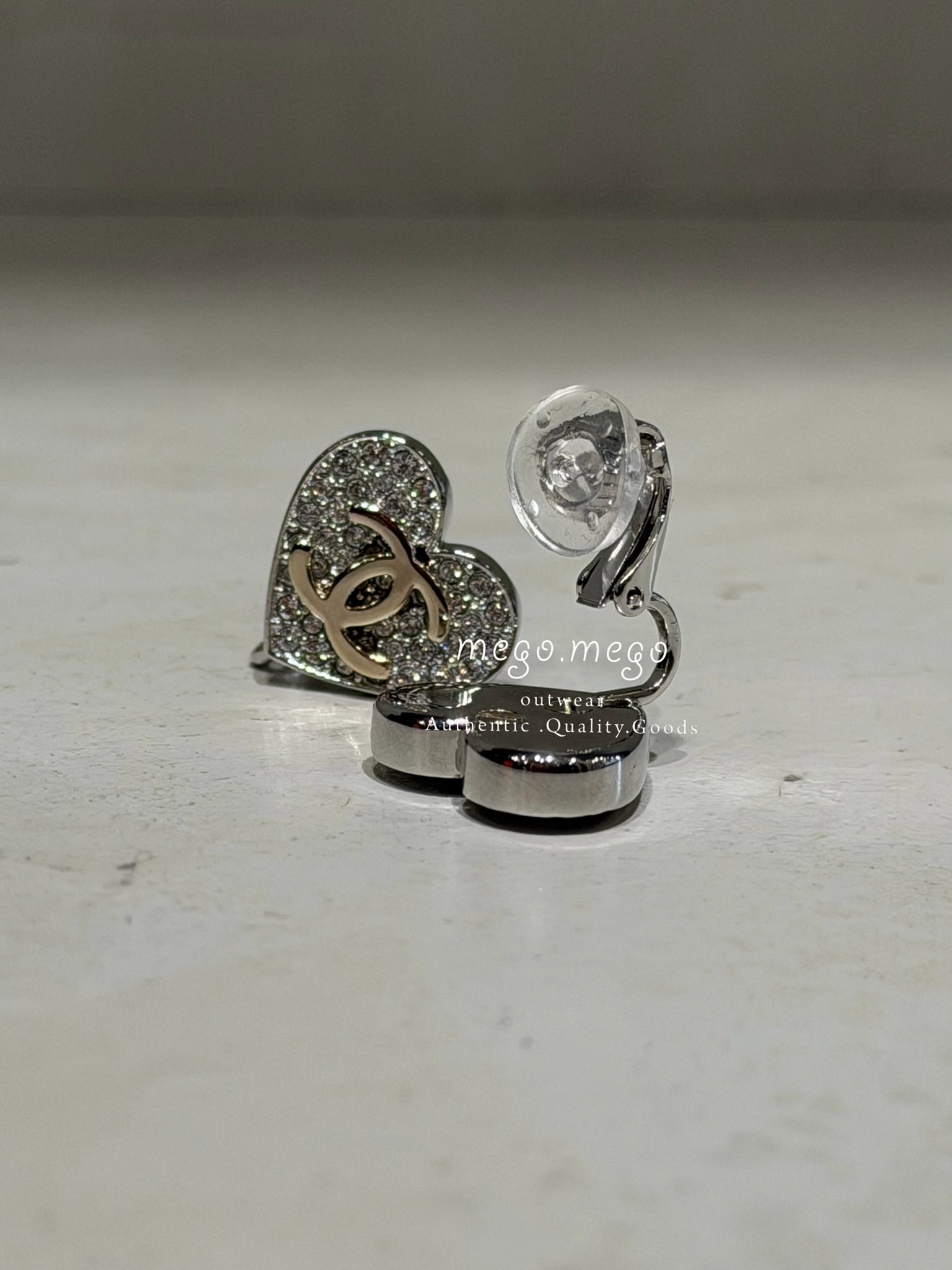 Chanel 26P 水鑽雙C愛心夾式耳環