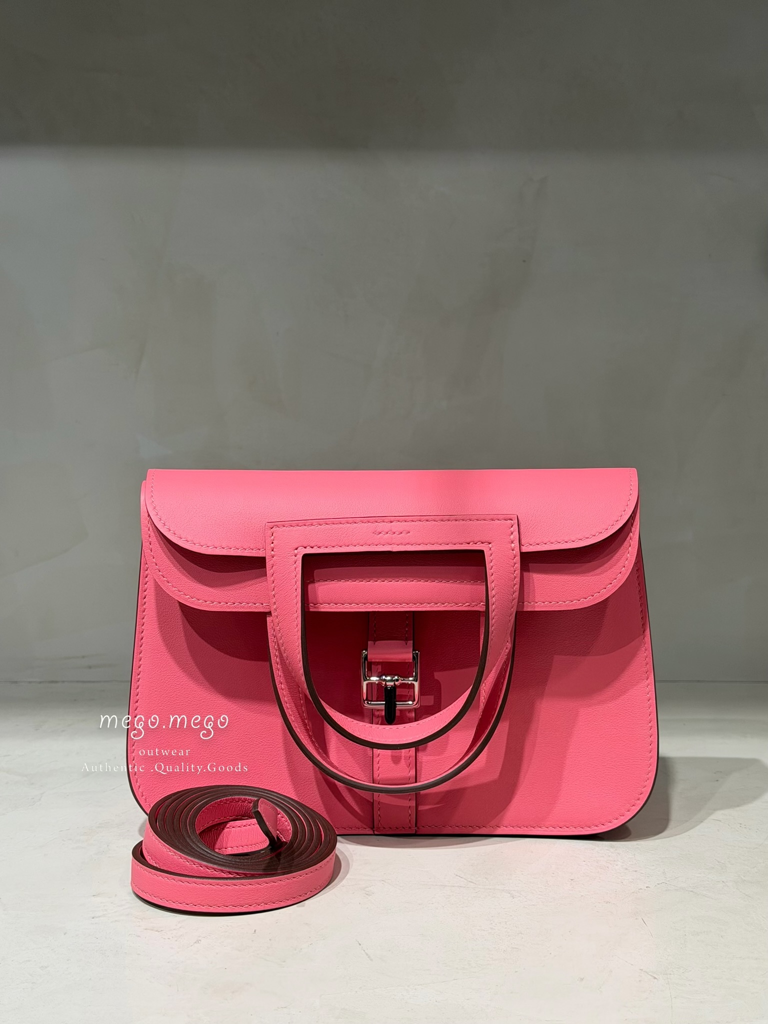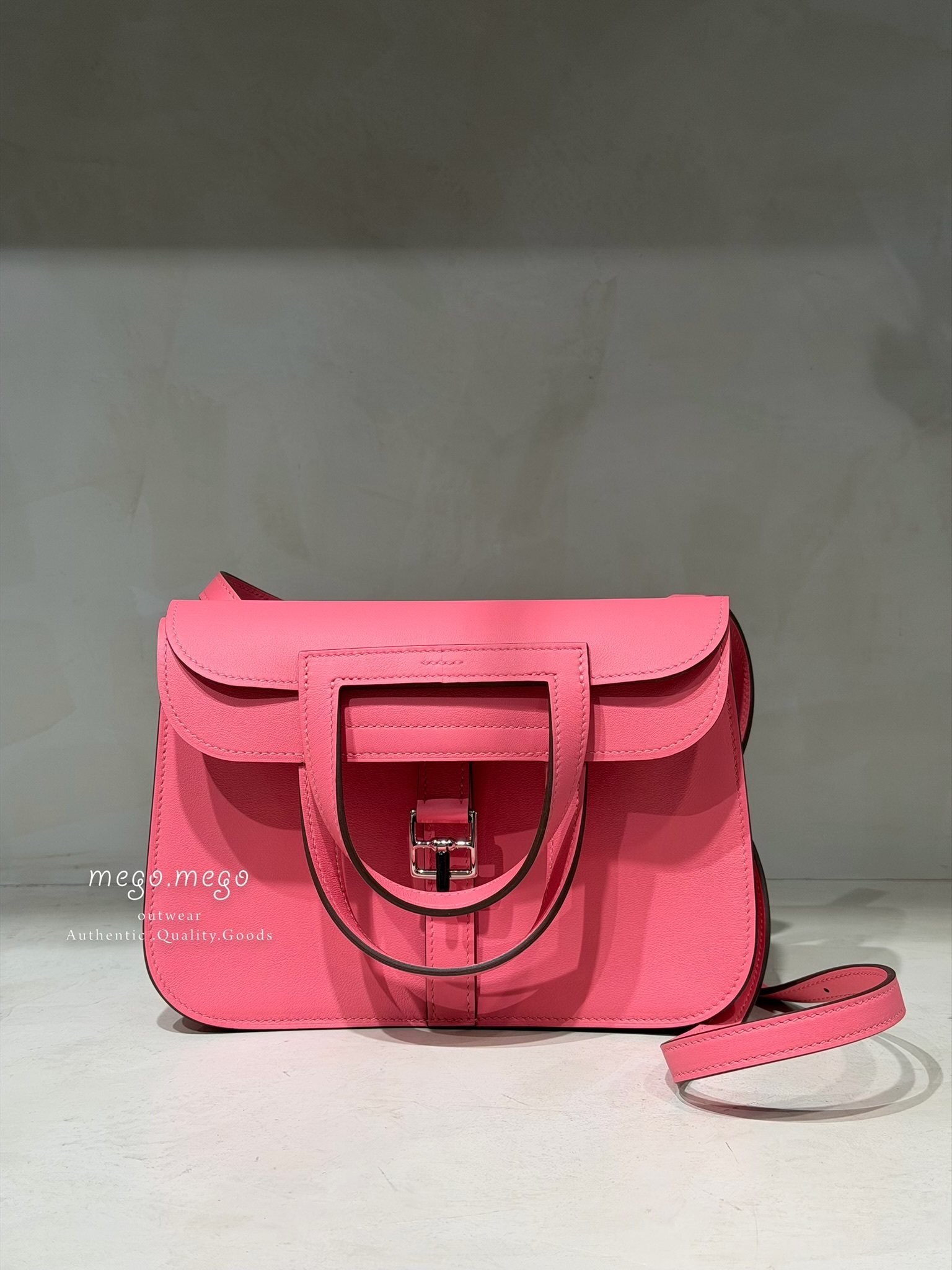 HERMÈS Mini Halzan 杜鵑粉銀扣