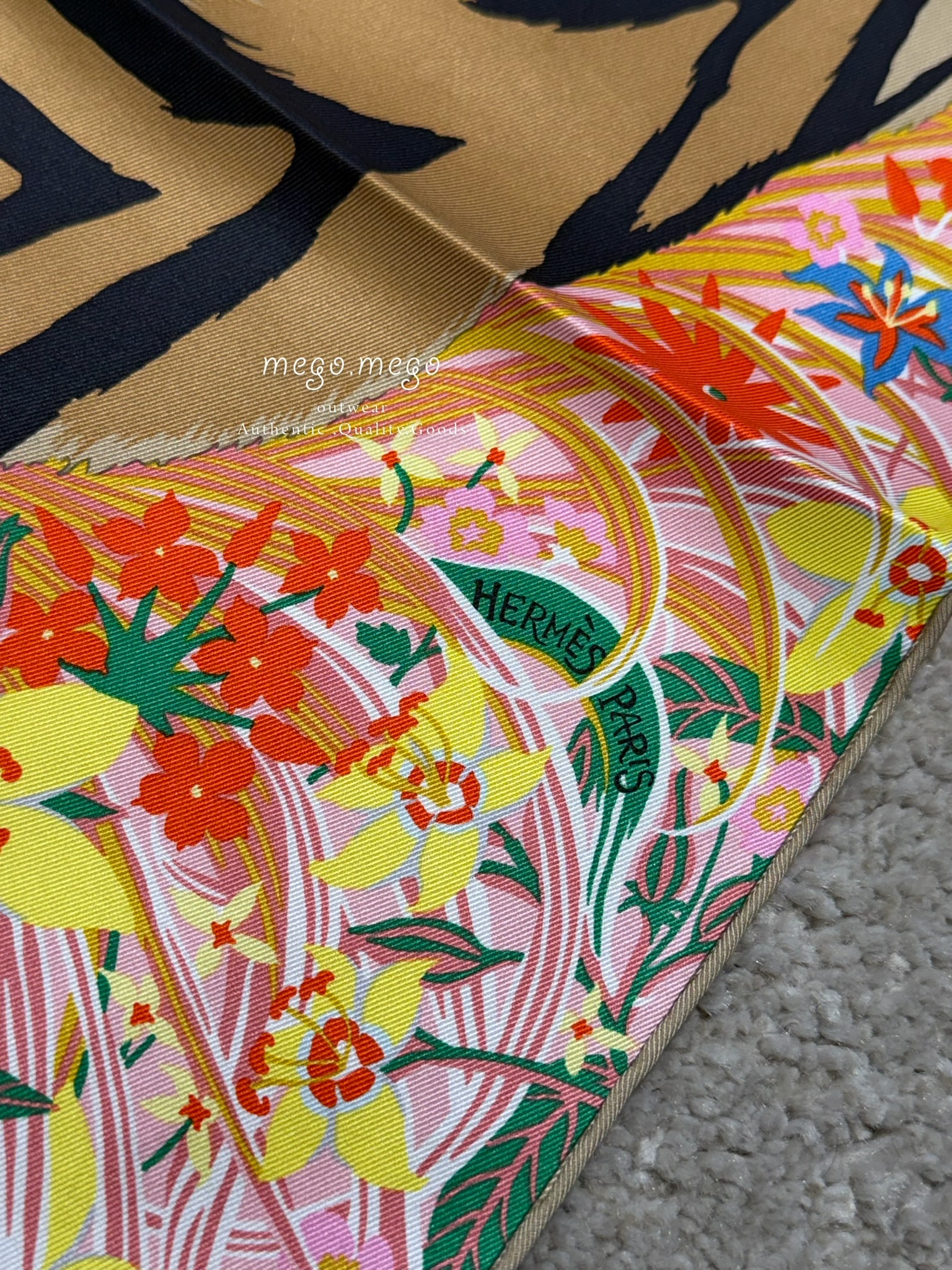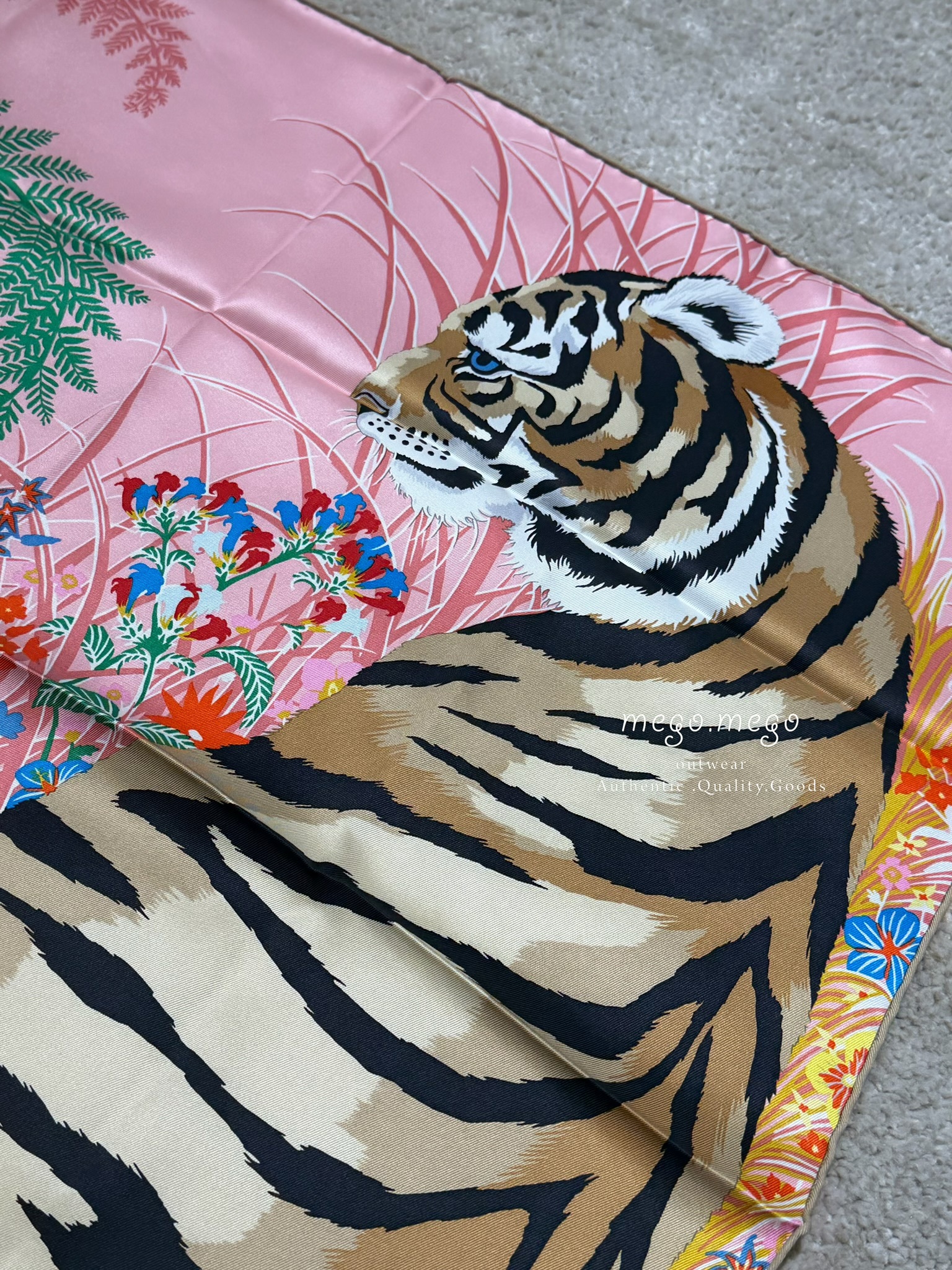 Hermès Tyger Tyger 老虎絲巾 粉底