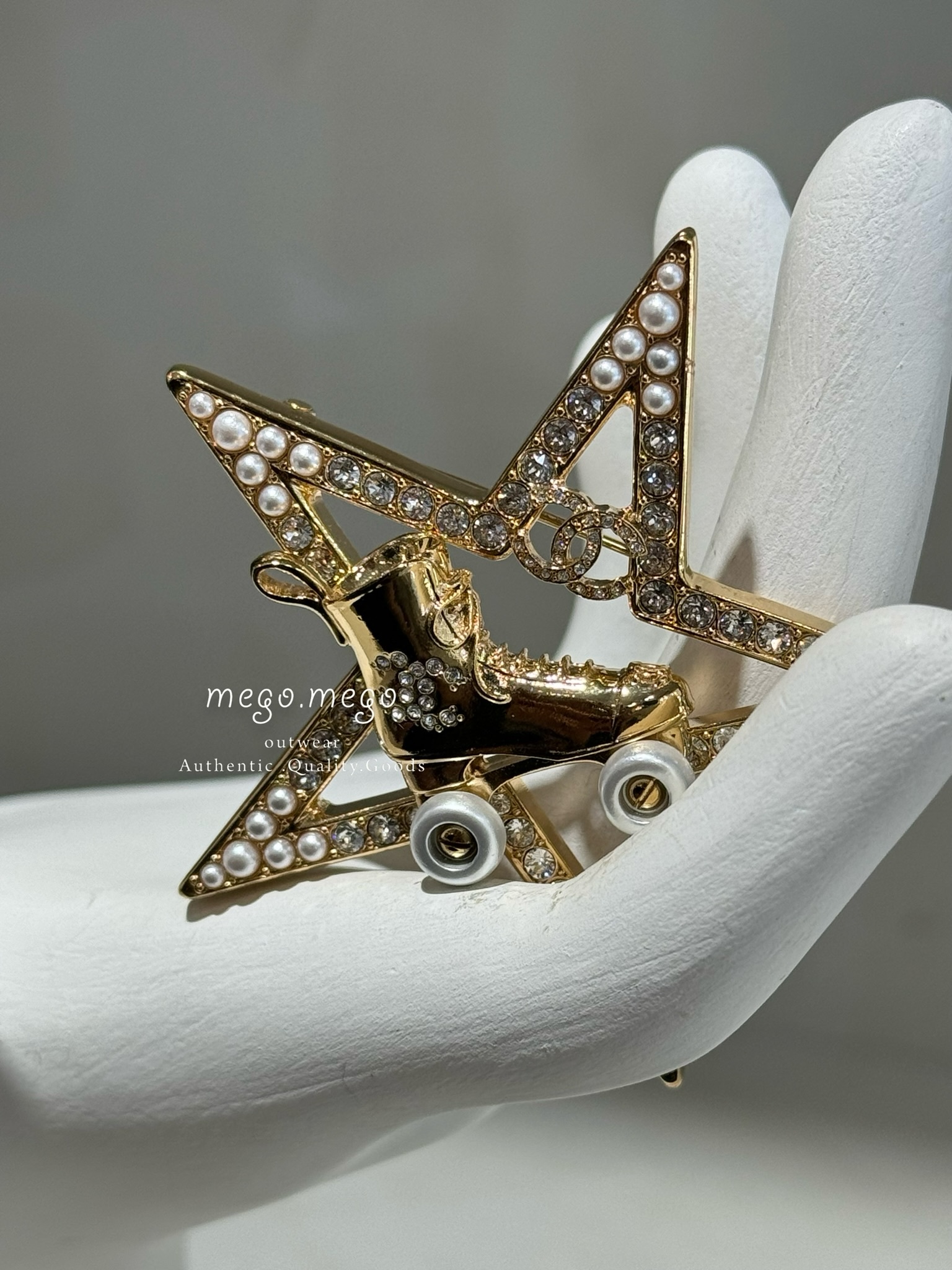 Chanel 星星雙C溜冰鞋水鑽胸針