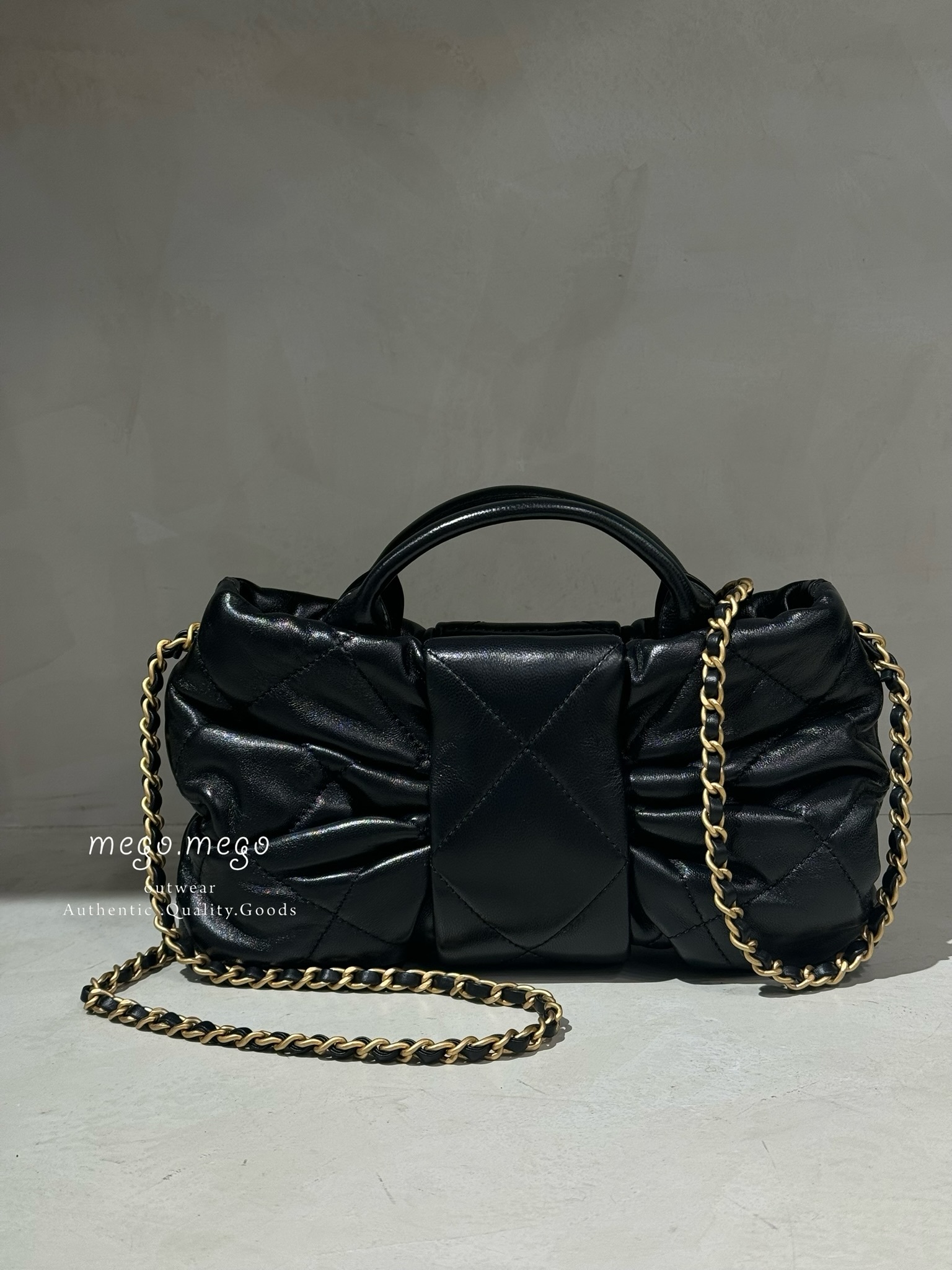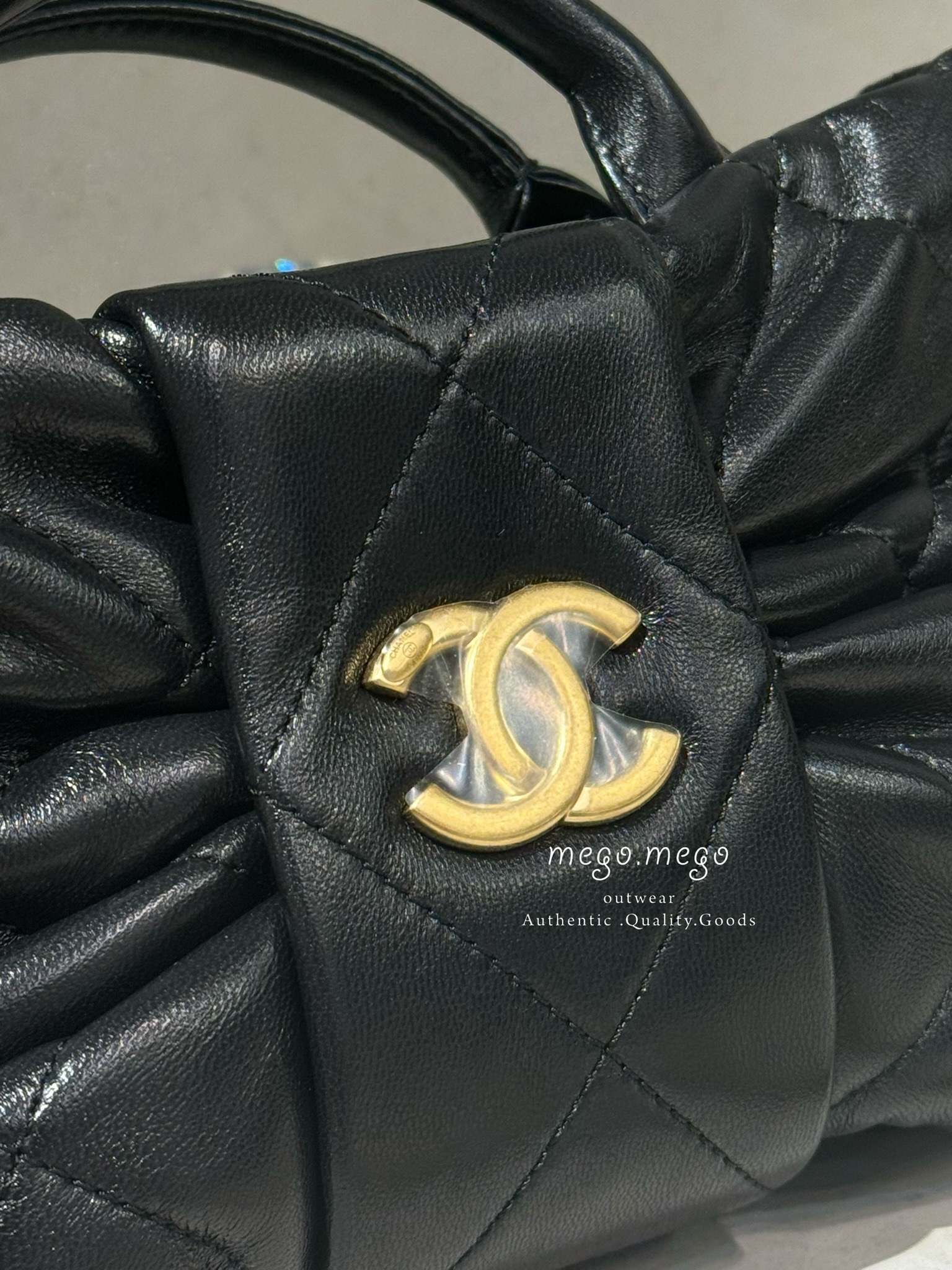 Chanel 25K 蝴蝶結手提包 小 黑金