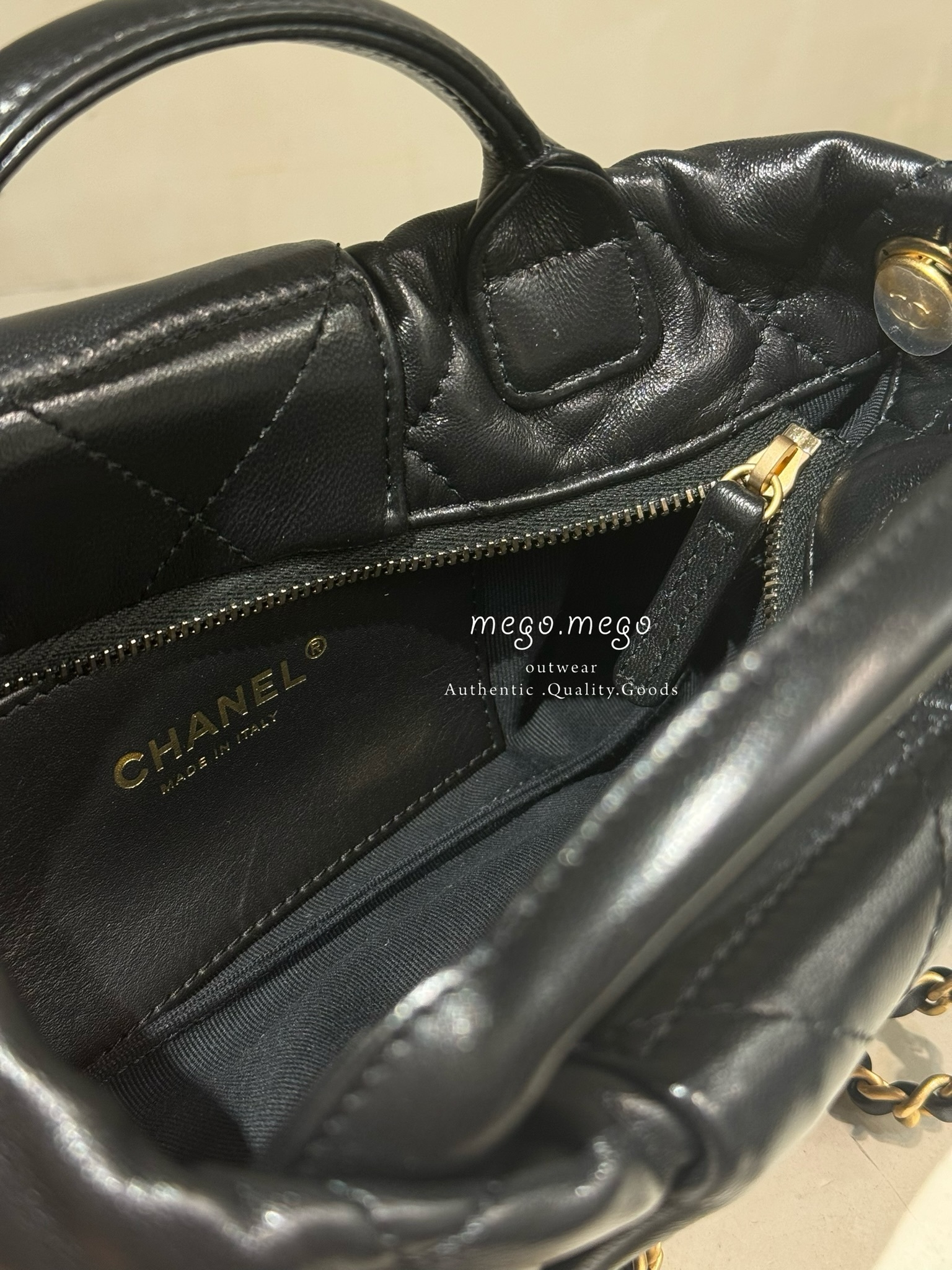 CHANEL 25K 蝴蝶結手提包 小 黑金