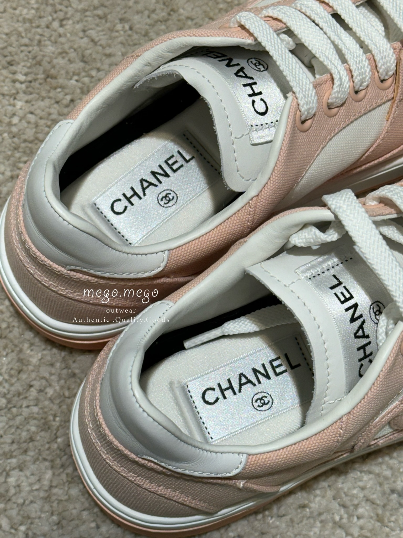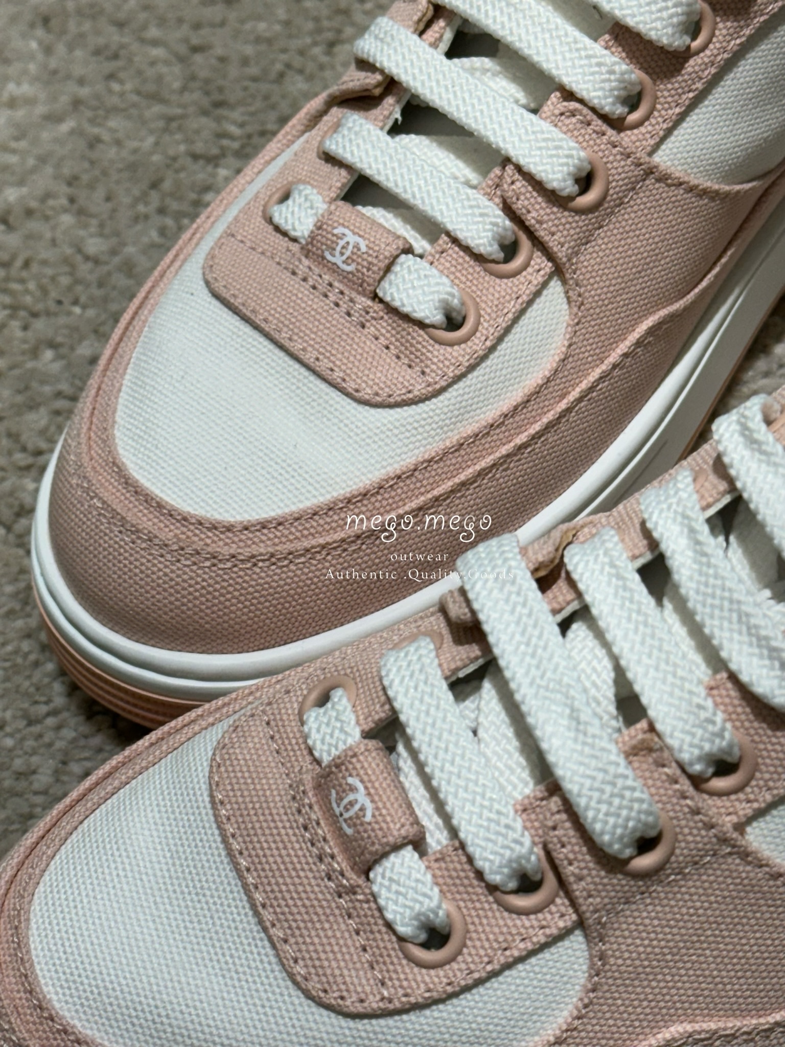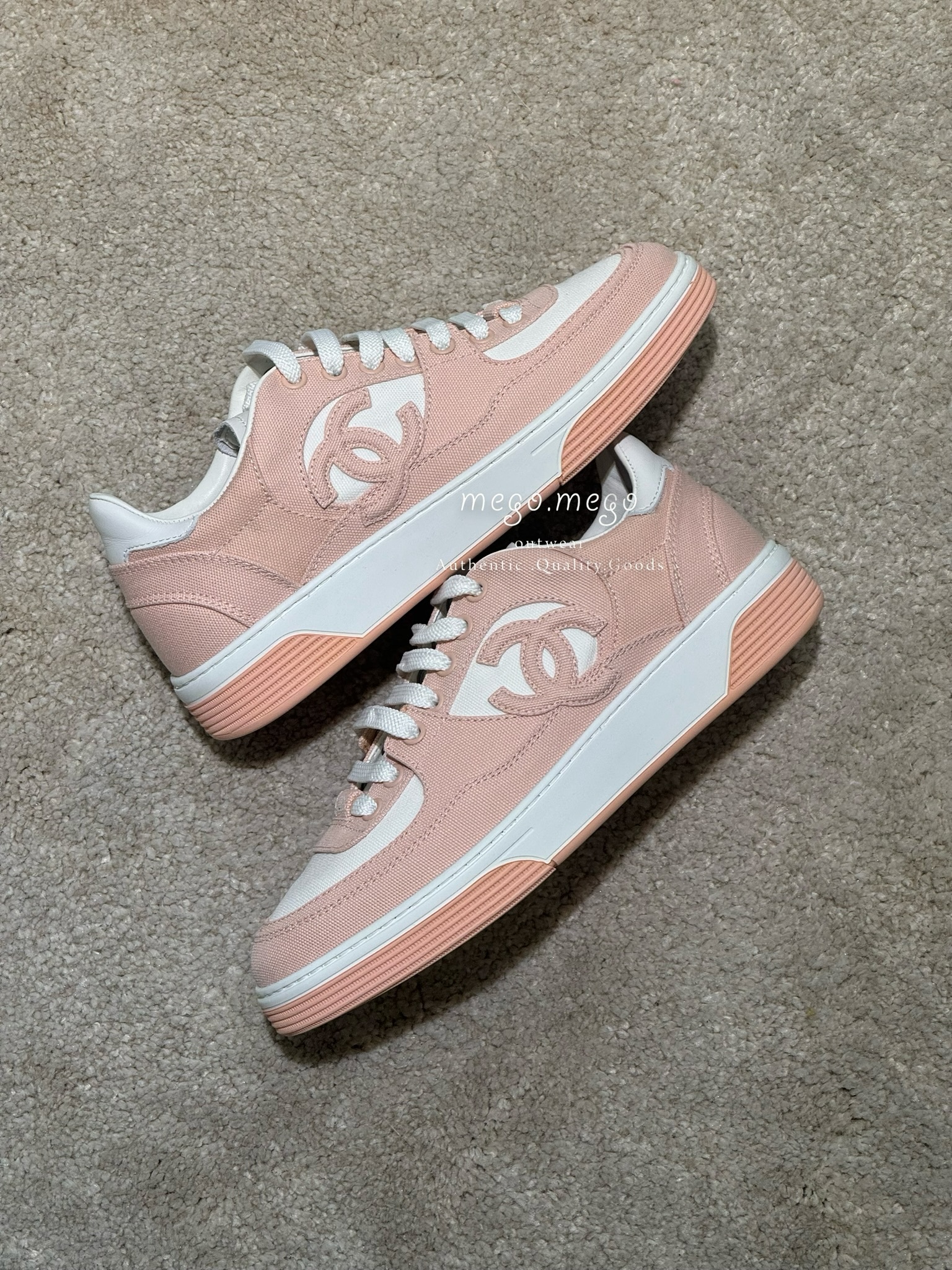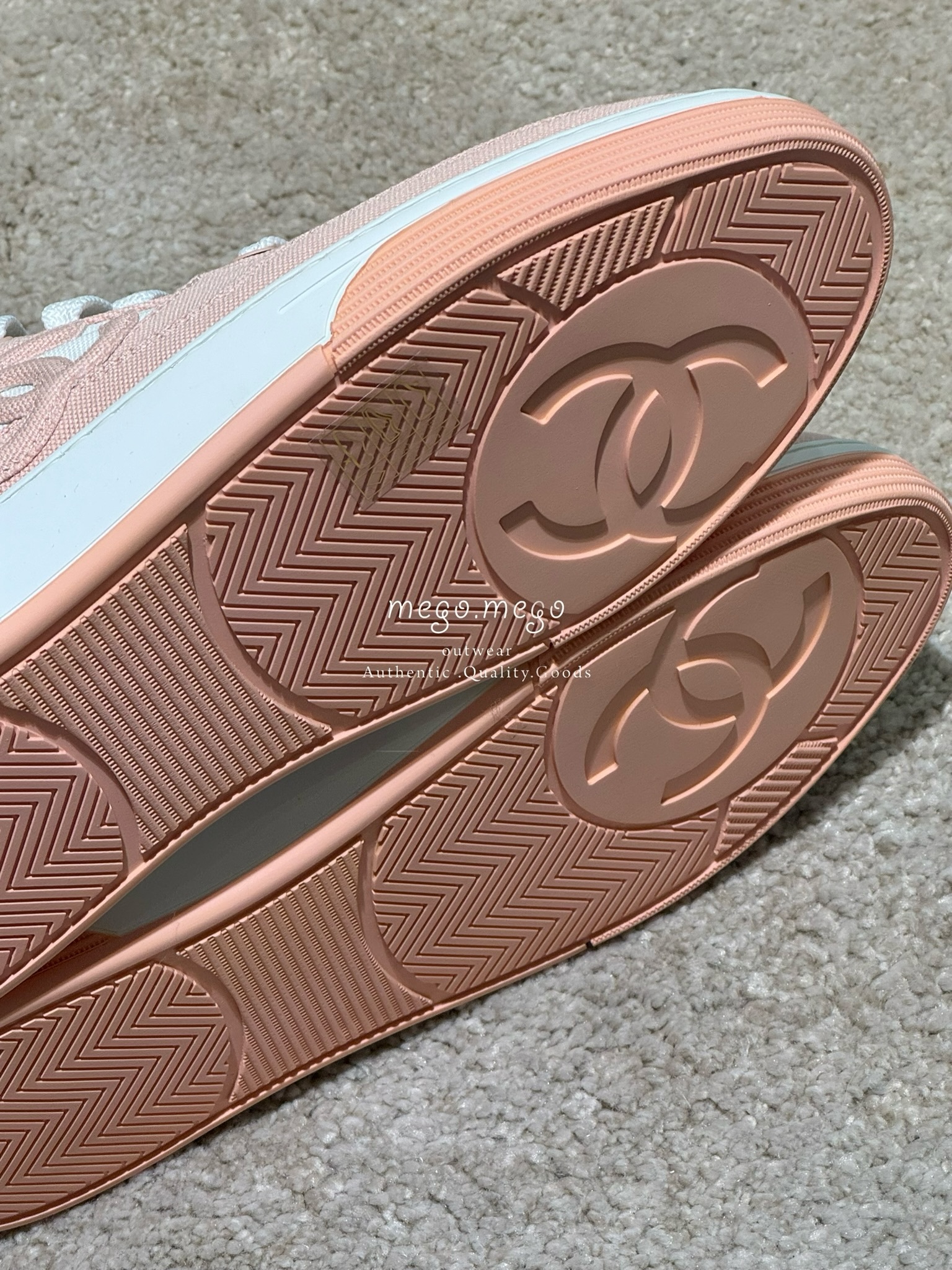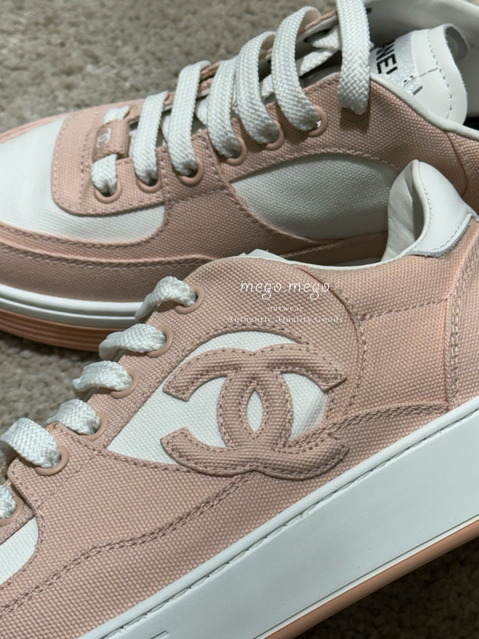 Chanel 尼龍皮革雙C運動鞋 粉橘
